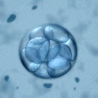 Division of a human eggNow consider this: A microscopic cell is to become a human being. This cell contains the promise of a germ of "mind." This cell is composed of chemical elements — carbon, oxygen, hydrogen, nitrogen, sulphur, phosphorous, sodium, potassium, chlorine. Each of these elements are built out of the unit of electrons. Therefore, since mind is potential in the unit of matter, we must accept the realization that mind is potential in the electron.
