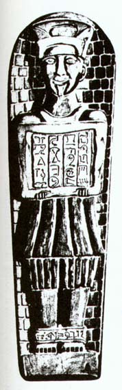 IMPORTANT: According to Barry Fell, an authority on deciphering many ancient inscriptions, the statue is an image of a priest of Baal advertising his temple that was dedicated to Hercules (Melgart, son of Baal and Tanitte.) Fell concluded the language was Creole Minoan-Hittite and read: "To ask the Gods for a lucky omen of the future, invoke Melgart and ... bring a propriation for him."