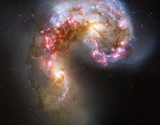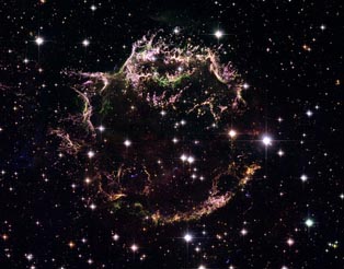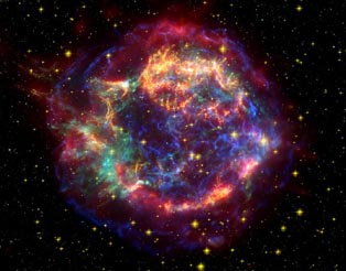 Cassiopeia A Antennae GalaxyThis is a false color image (multiple images) of a supernova that will become a "stellar-mass" black hole in time.