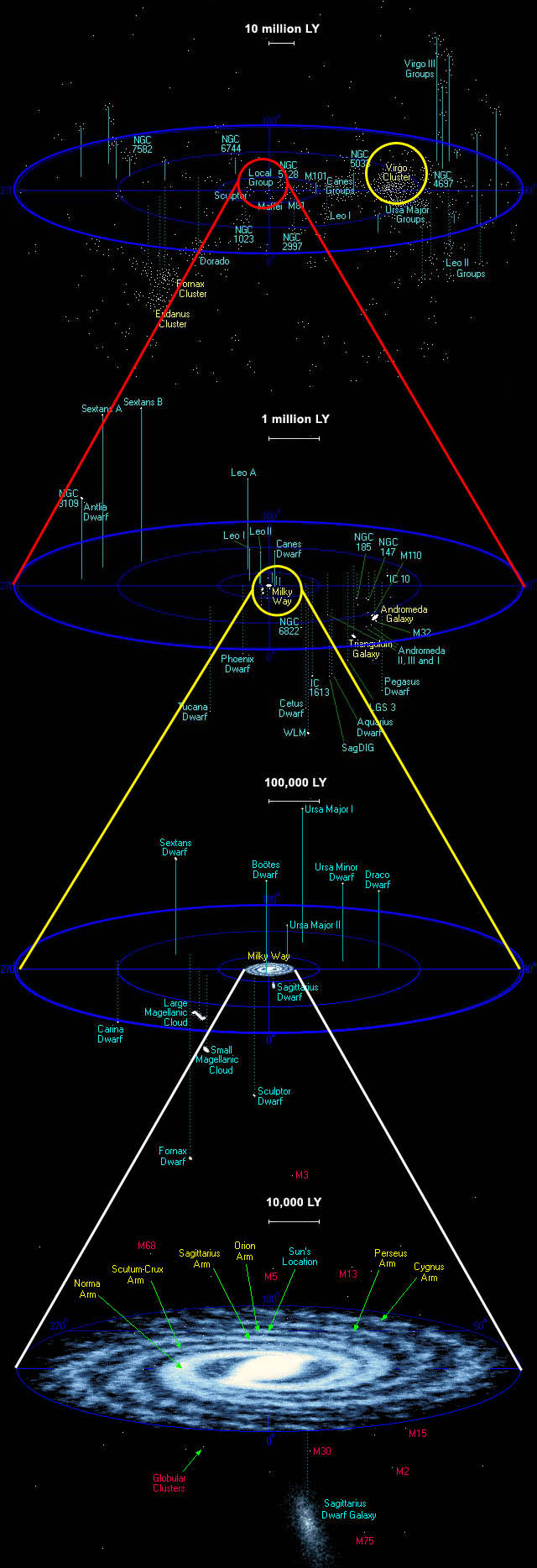Before proceeding, please spend some time studying the above dissection of the Universe to obtain a strong understanding of our location in the Universe, both in scope and scale.